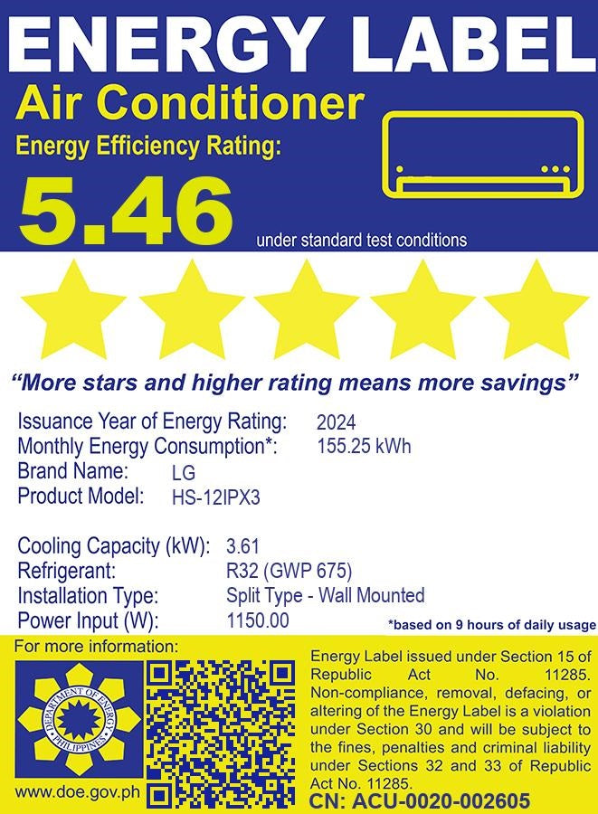 HSN/U12IPX3 LG 1.5HP SPLIT INV AC