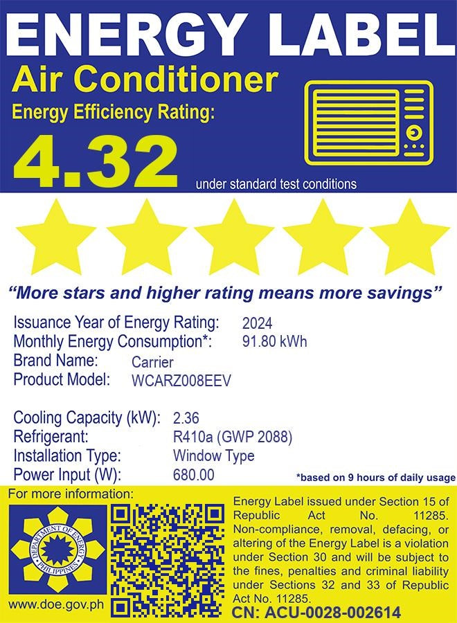 • Energy Efficiency Ratio (MIN ~ MAX): 4.32