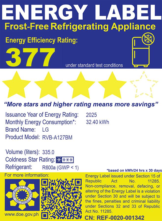 Capacity, Total Shelf Area: 335L