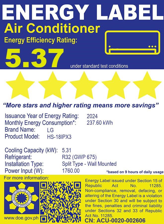 Energy Efficiency Ratio / CSPF: 5.44 (5 Star Rating)